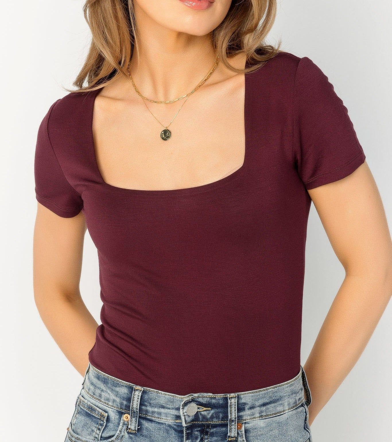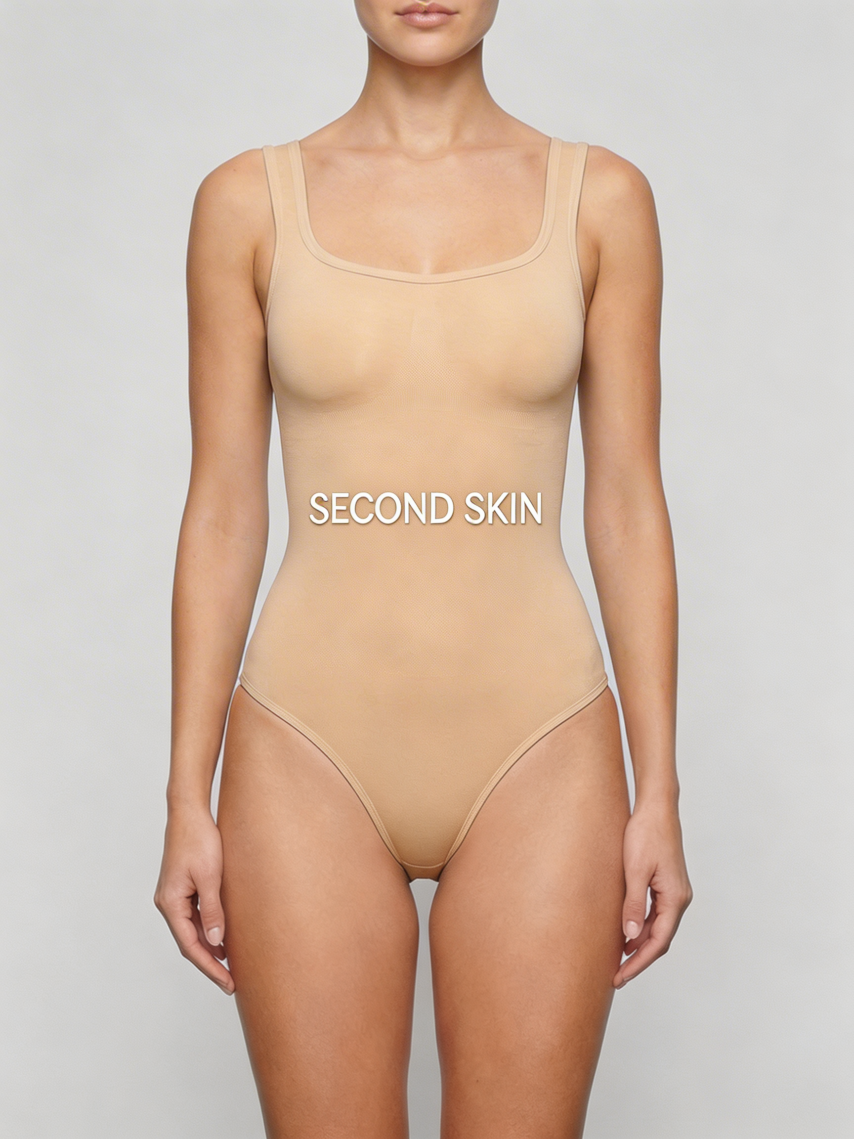 Neckline Deep scoop neck StrapsWide sculpting straps — non-slipCut High-cut legClosureSnap button gusset